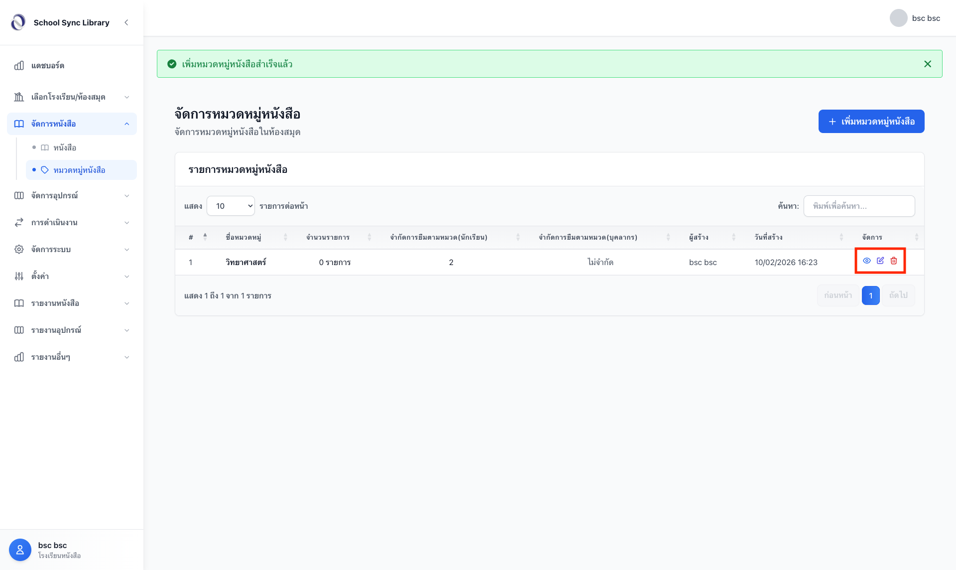 เมื่อสร้างเสร็จแล้ว รายชื่อหมวดหมู่จะปรากฏในตารางจัดการ ท่านสามารถ: