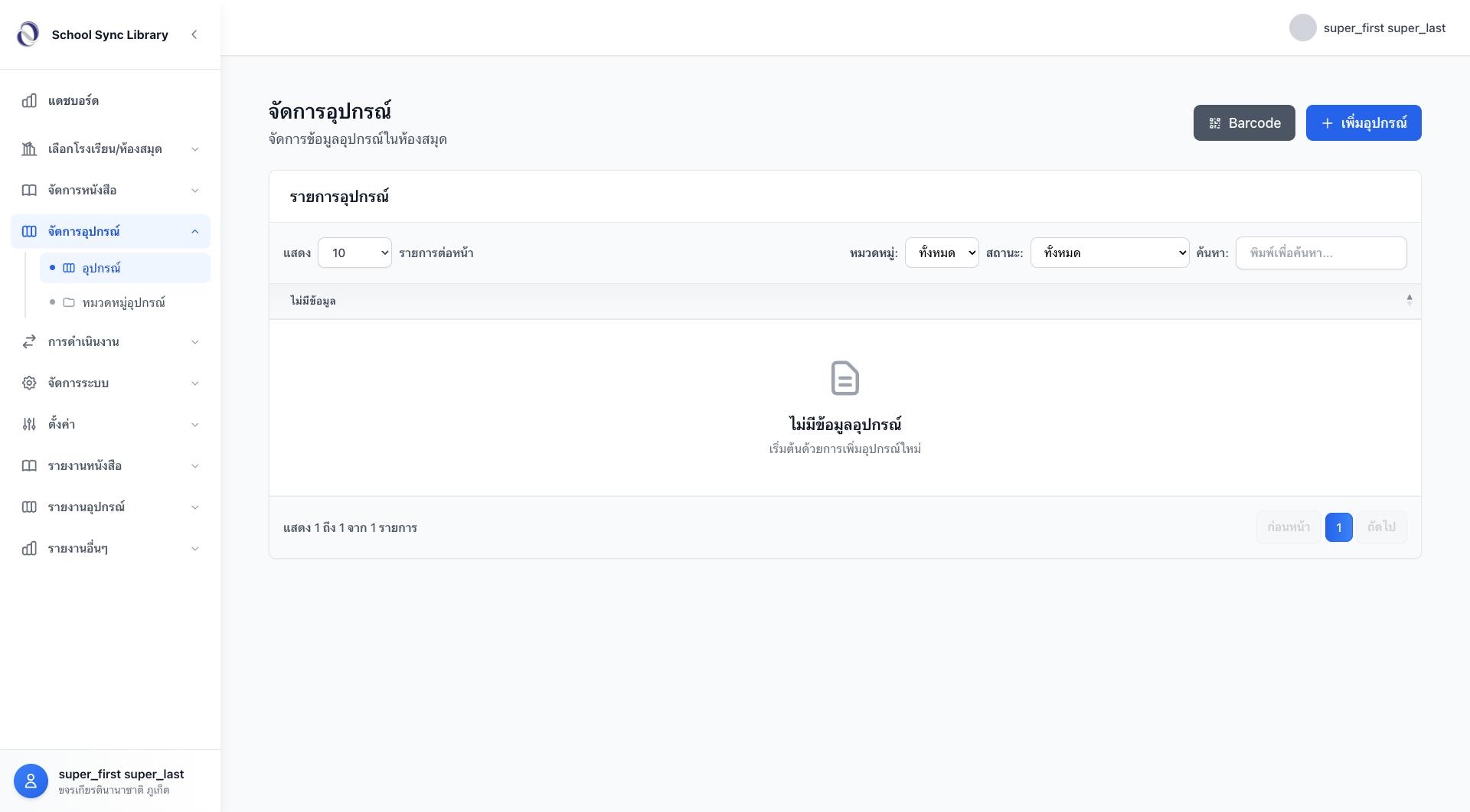 เมนูนี้ใช้สำหรับบริหารจัดการรายชื่ออุปกรณ์ทั้งหมดในห้องสมุด ไม่ว่าจะเป็นการเพิ่มอุปกรณ์ใหม่ การตรวจสอบสถานะ หรือการแก้ไขข้อมูล