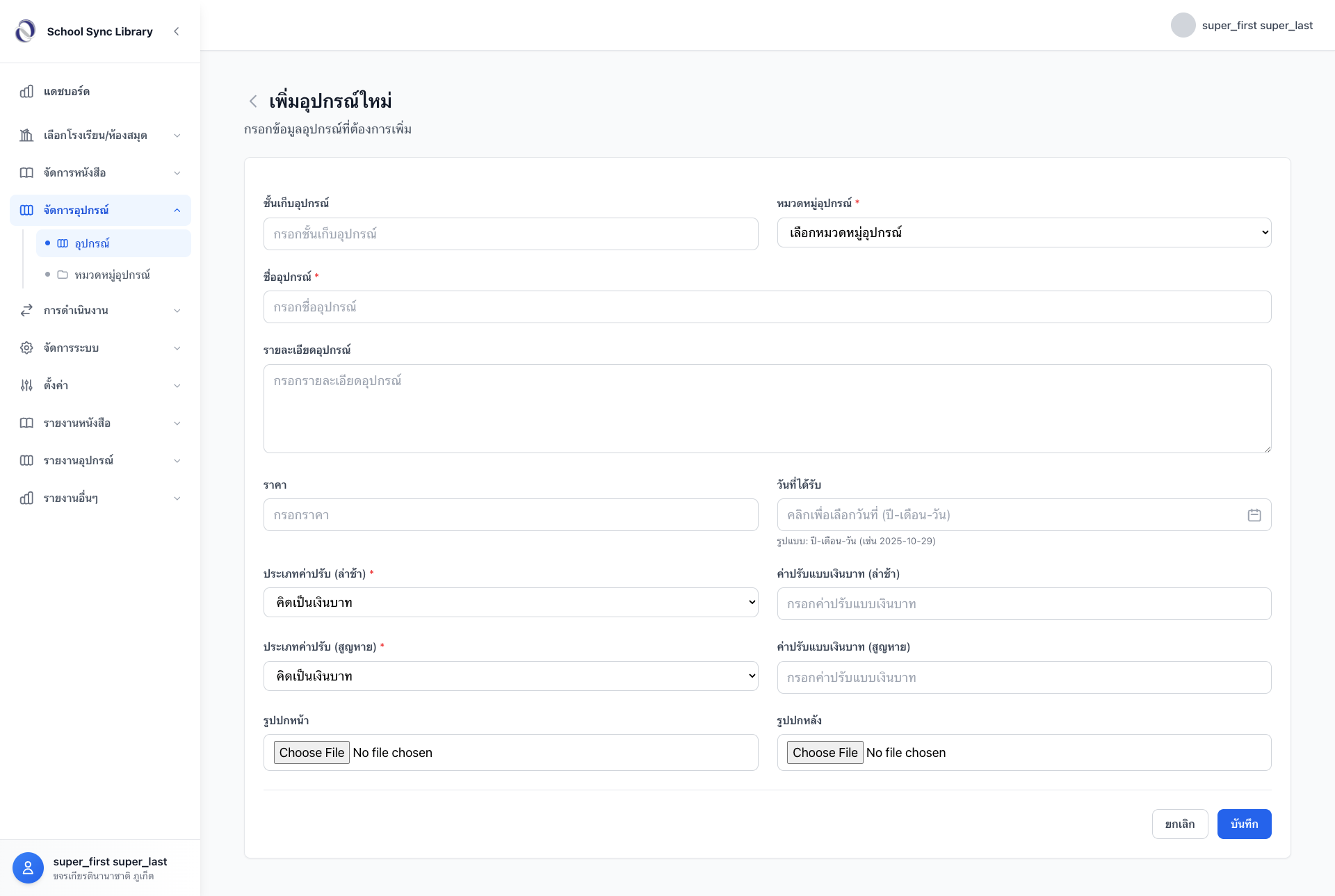 ให้คลิกที่ปุ่ม "+ เพิ่มอุปกรณ์" ที่มุมขวาบน เพื่อเข้าสู่หน้าจอการกรอกข้อมูลอุปกรณ์อย่างละเอียด และบันทึกข้อมูลให้เรียบร้อย