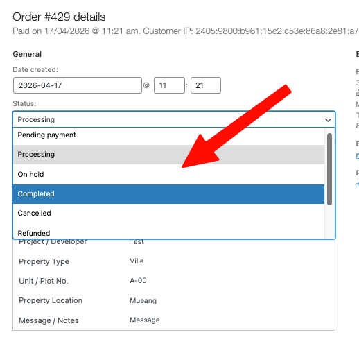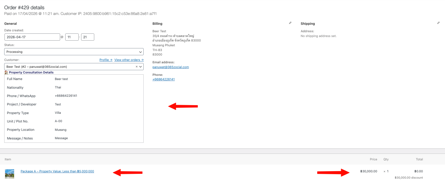 ใน Order จะเห็นส่วน "Property Consultation Details"